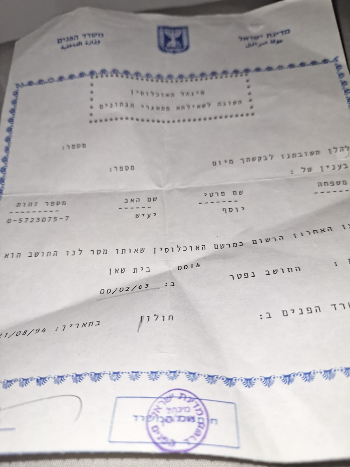 In 1994 I went to the Ministry Of Interior in Afula to issue a death certificate for him, on August 21, 1994.